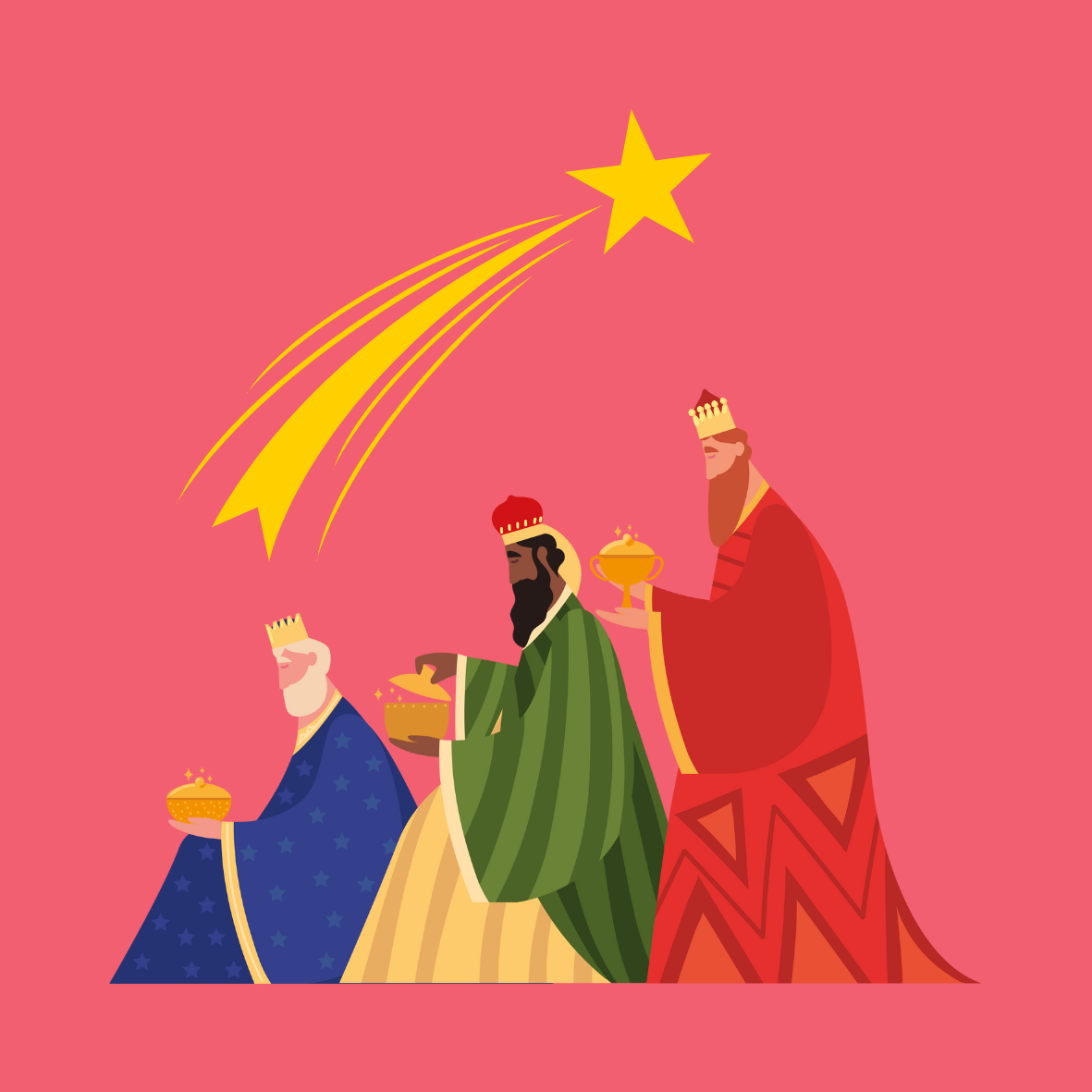 Espanjassa ei tule joulupukki, vaan kolme viisasta miestä, jotka Raamatun mukaan toivat lahjoja Jeesus-lapselle tämän syntymän jälkeen. Nämä kolme kuningasta, Melkior, Gaspar ja Balthasar, tulevat Lähi-idästä ja matkustavat kameleilla, ja tammikuun 5. päivän yönä he saapuvat Espanjaan tuomaan lapsille joululahjoja, aivan kuten he tekivät Jeesus-lapselle. Tätä tapahtumaa juhlitaan suurilla paraateilla, joissa kolme kolmeksi tietäjäksi pukeutunutta ihmistä ajaa ympäriinsä suurilla vaunuilla ja heittää lapsille makeisia. Joissakin kaupungeissa järjestetään teatteriesityksiä, joissa kolme viisasta miestä saapuvat paikalle veneellä tai jopa helikopterilla. Se on yksi joulun odotetuimmista tapahtumista! Erityisesti lapset rakastavat sitä.